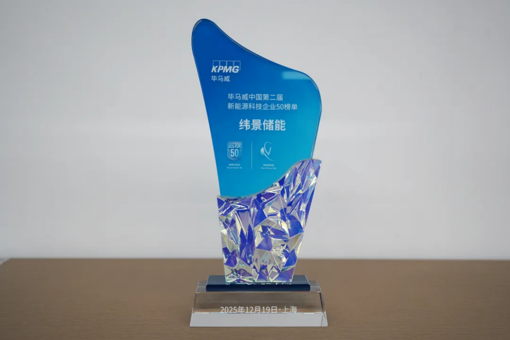2025年12月19日,毕马威中国在上海发布“第二届新能源科技企业50榜单”。该榜单经专业评审委员会深入调研与严格评估产生,旨在发掘与表彰新能源领域的卓越企业,为行业树立标杆,推动产业高质量发展。纬景储能科技有限公司凭借其在长时储能领域展现的综合技术实力与产业化领先优势,成功入选。这同时也是对锌铁液流电池技术路径的突破性进展及广阔市场前景的高度认可。