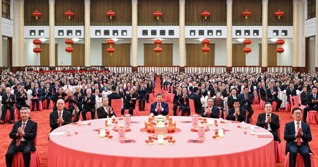 中共中央、国务院14日上午在人民大会堂举行2026年春节团拜会。中共中央总书记、国家主席、中央军委主席习近平发表讲话,代表党中央和国务院,向全国各族人民,向香港特别行政区同胞、澳门特别行政区同胞、台湾同胞和海外侨胞拜年。